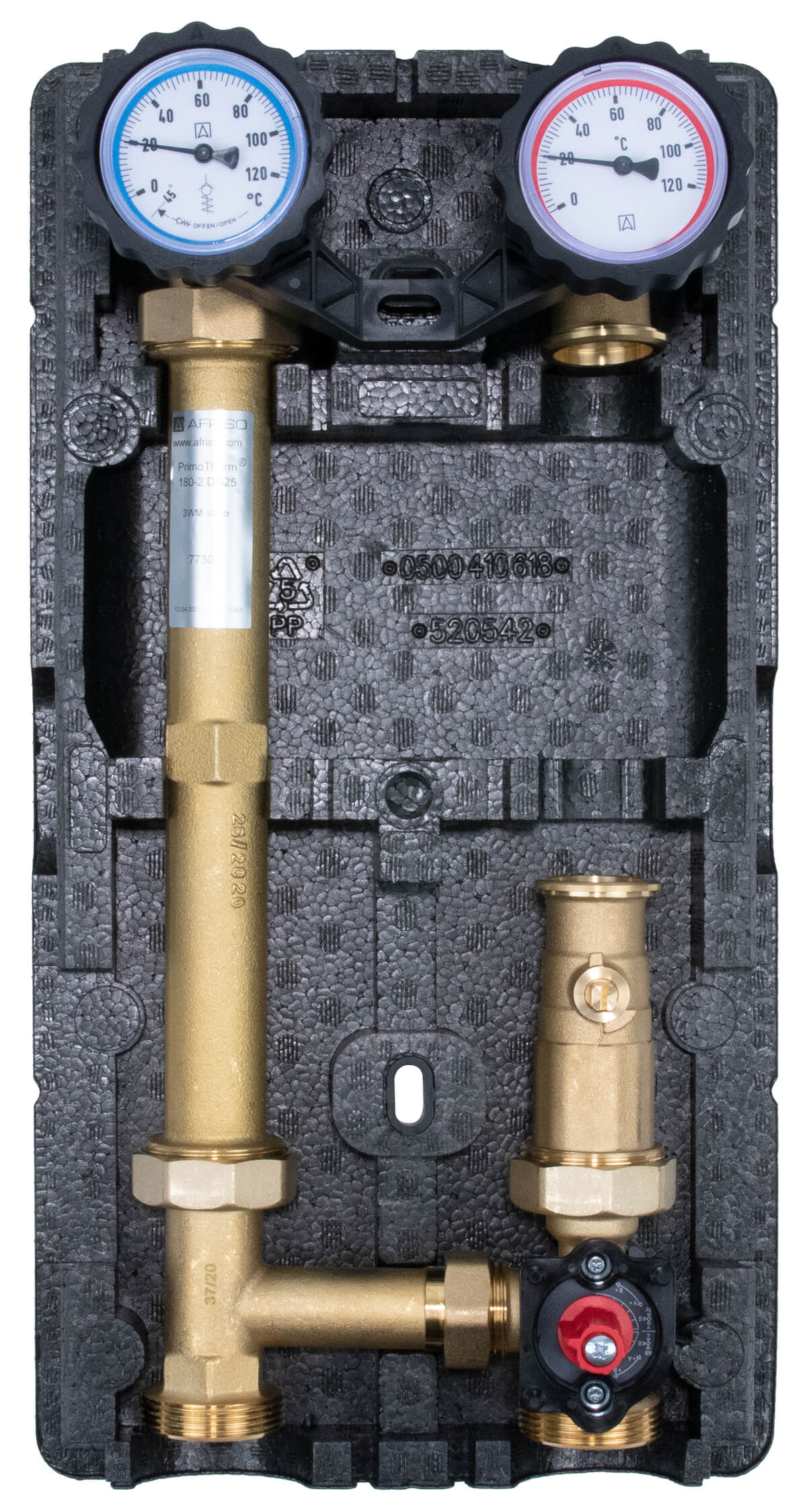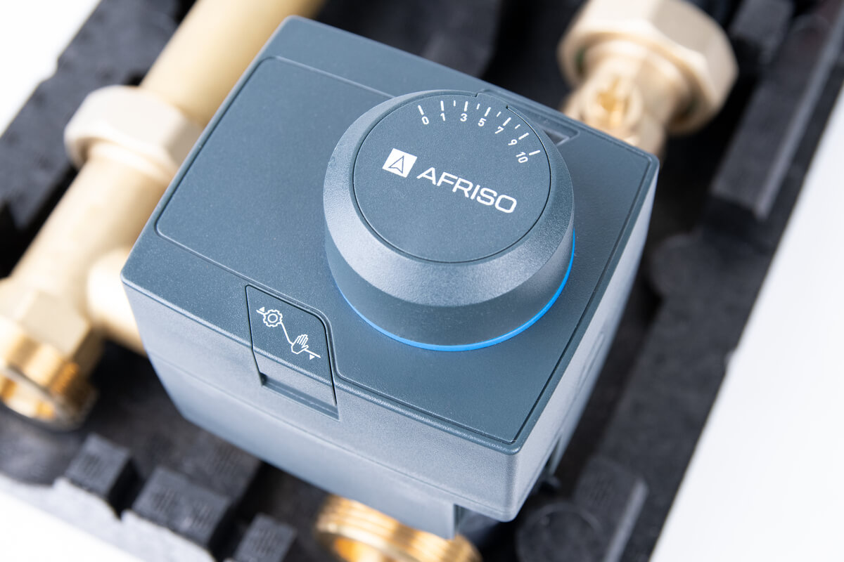 Grupa pompowa AFRISO PrimoTherm 180-2 DN 25 3-WM-SM Vario GZ x GW 1 1/2'' x 1'', z zaworem mieszającym, z izolacją, z siłownikiem arm 343 proclick