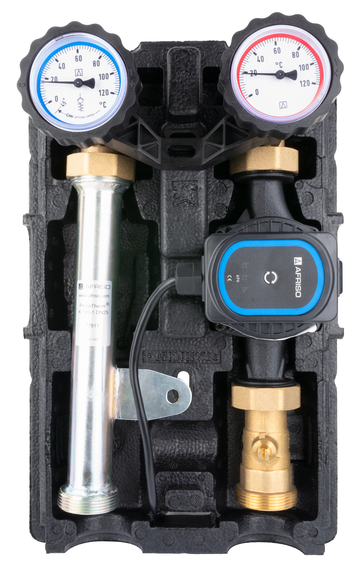Grupa pompowa AFRISO PrimoTherm K 180-1 DN 25 AP GZ x GW 1 1/2'' x 1'', z izolacją, z pompą obiegową AFRISO APH 361 25-7/180 mm