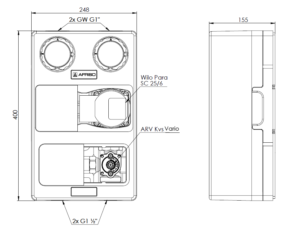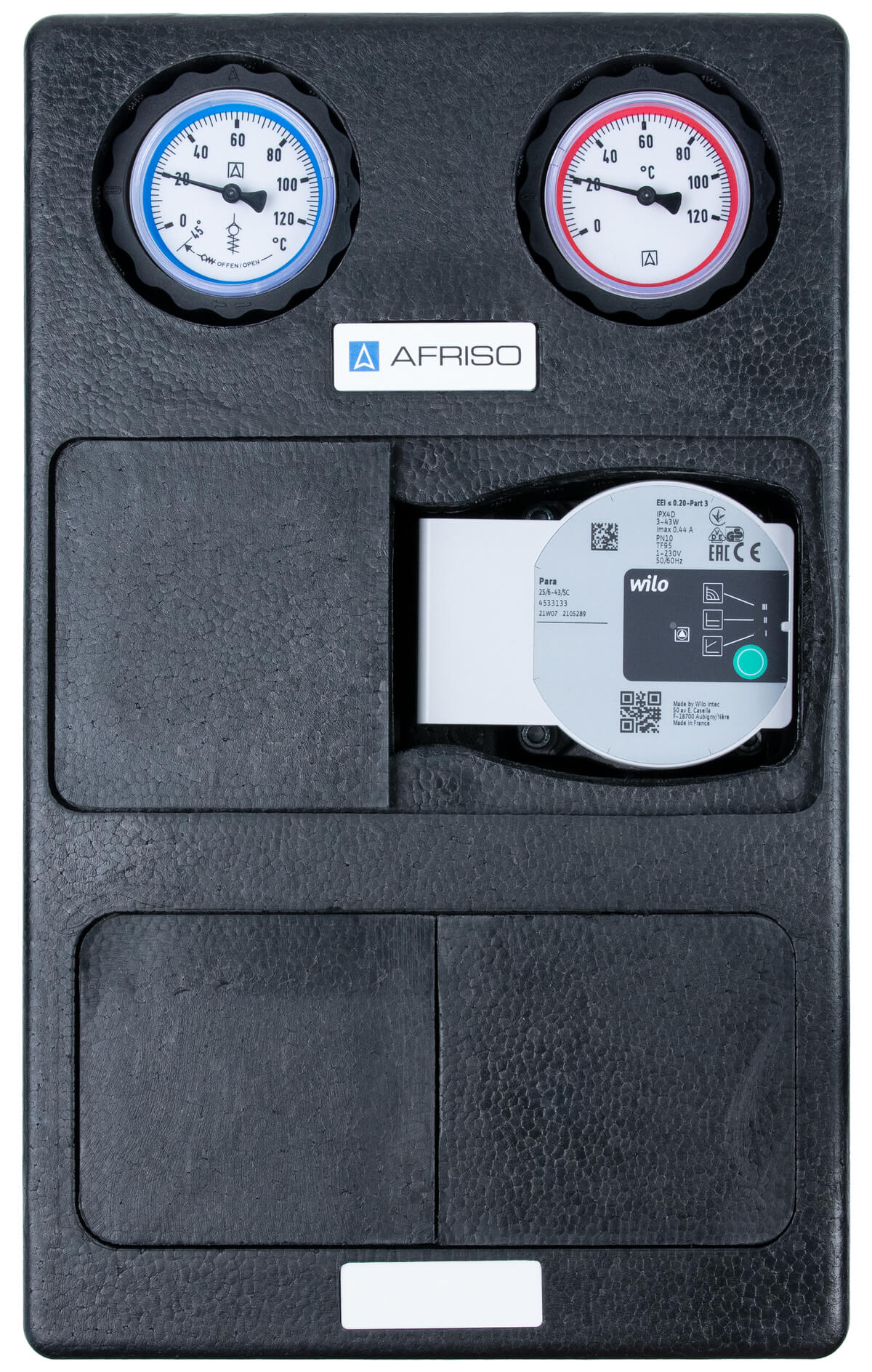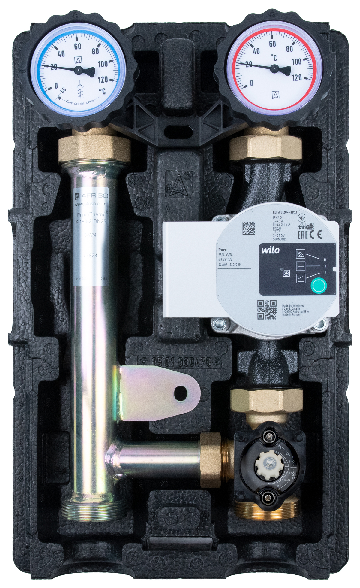 Grupa pompowa AFRISO PrimoTherm K 180-2 DN 25 WP 3-WM GZ x GW 1 1/2'' x 1'', z zaworem mieszającym, z izolacją, z pompą obiegową Wilo Para SC 25/6