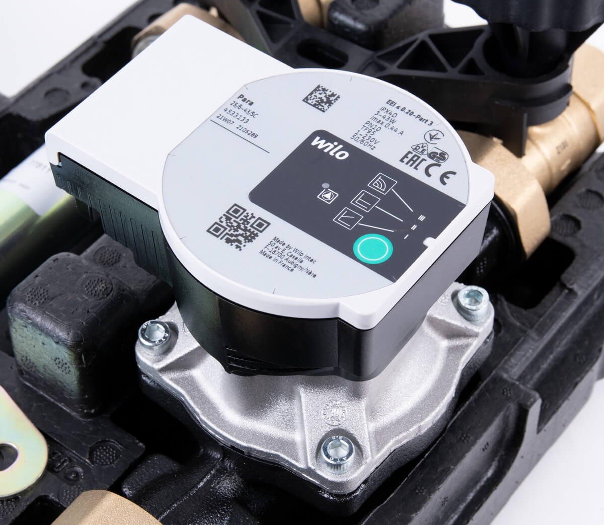 Zainstalowany zawór mieszający ARV Kvs Vario z możliwością ustawienia Kvs w zakresie 2,5÷12 m³/h oraz pompa Wilo Para SC 25/6.