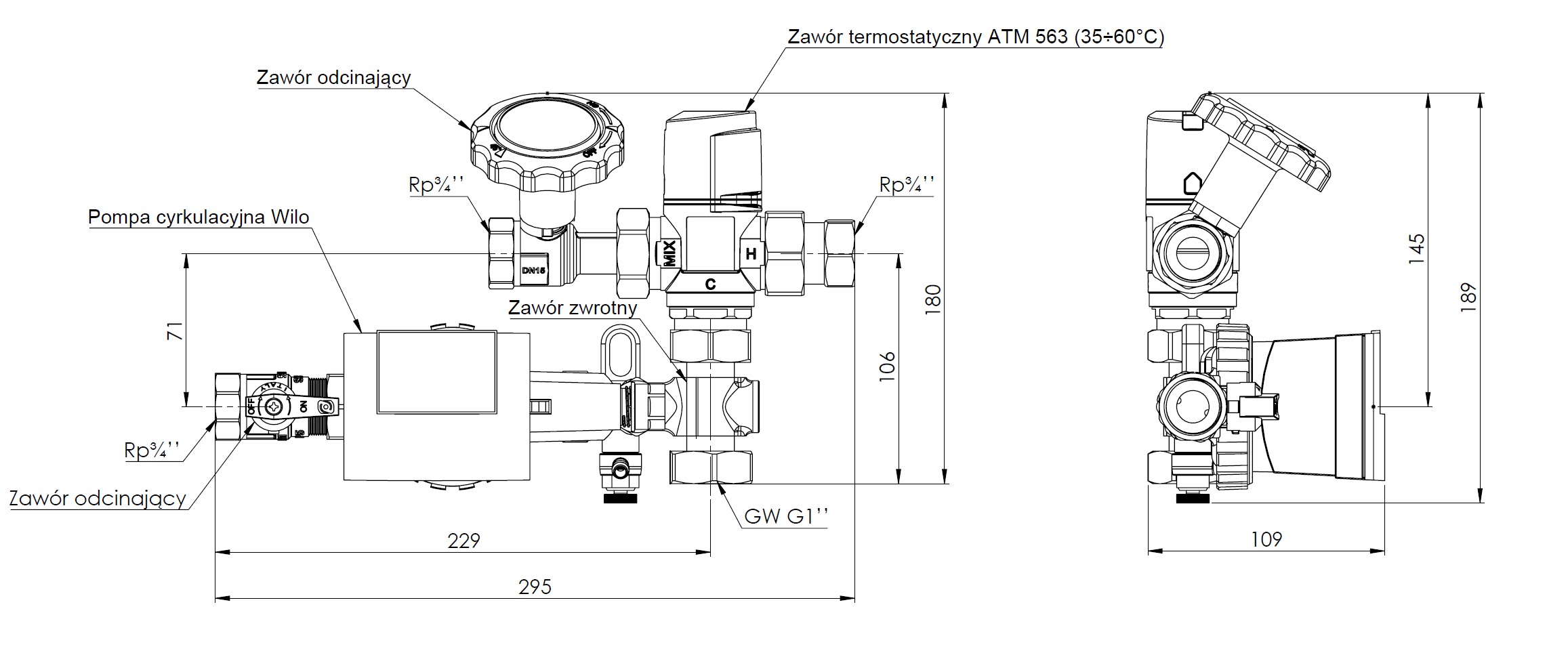 - Zawór termostatyczny ATM zapobiega oparzeniom i pozwala bezpiecznie podnieść temperaturę w zasobniku (np. celem wygrzania lub zwiększenia ilości ciepłej wody).