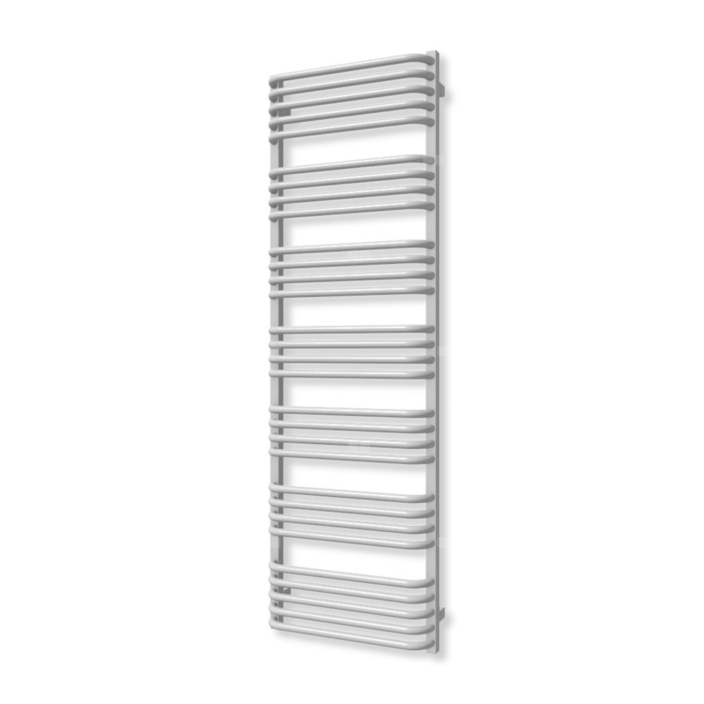 Klasyczny grzejnik łazienkowy zbudowany z kolektorów o przekroju prostokąta połączonych za pomocą wygiętych rurek. Rurki typu "C" oraz zachowanie przestrzeni między sekcjami ułatwiają zawieszenie ręczników, dzięki czemu Alex dobrze sprawadza się zarówno w roli ogrzewacza pomieszczeń jak i suszarki.
