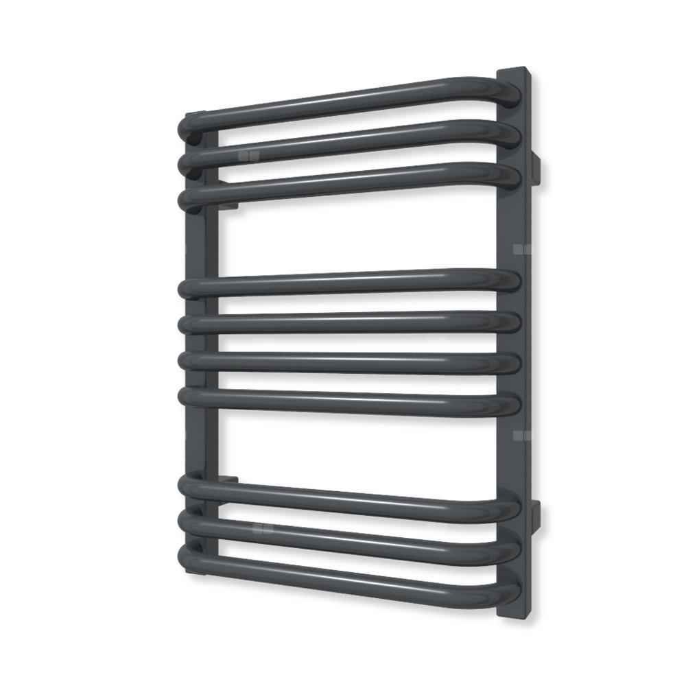Klasyczny grzejnik łazienkowy zbudowany z kolektorów o przekroju prostokąta połączonych za pomocą wygiętych rurek. Rurki typu "C" oraz zachowanie przestrzeni między sekcjami ułatwiają zawieszenie ręczników, dzięki czemu Alex dobrze sprawadza się zarówno w roli ogrzewacza pomieszczeń jak i suszarki.