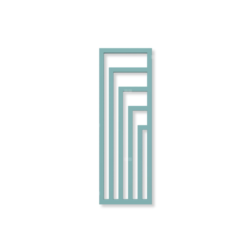 Grzejnik elektryczny TERMA ANGUS V 1300 x 440 mm, kolor turkusowy pastelowy RAL6034, moc 600 W, podłączenie E1, kabel prosty bez wtyczki z maskownicą