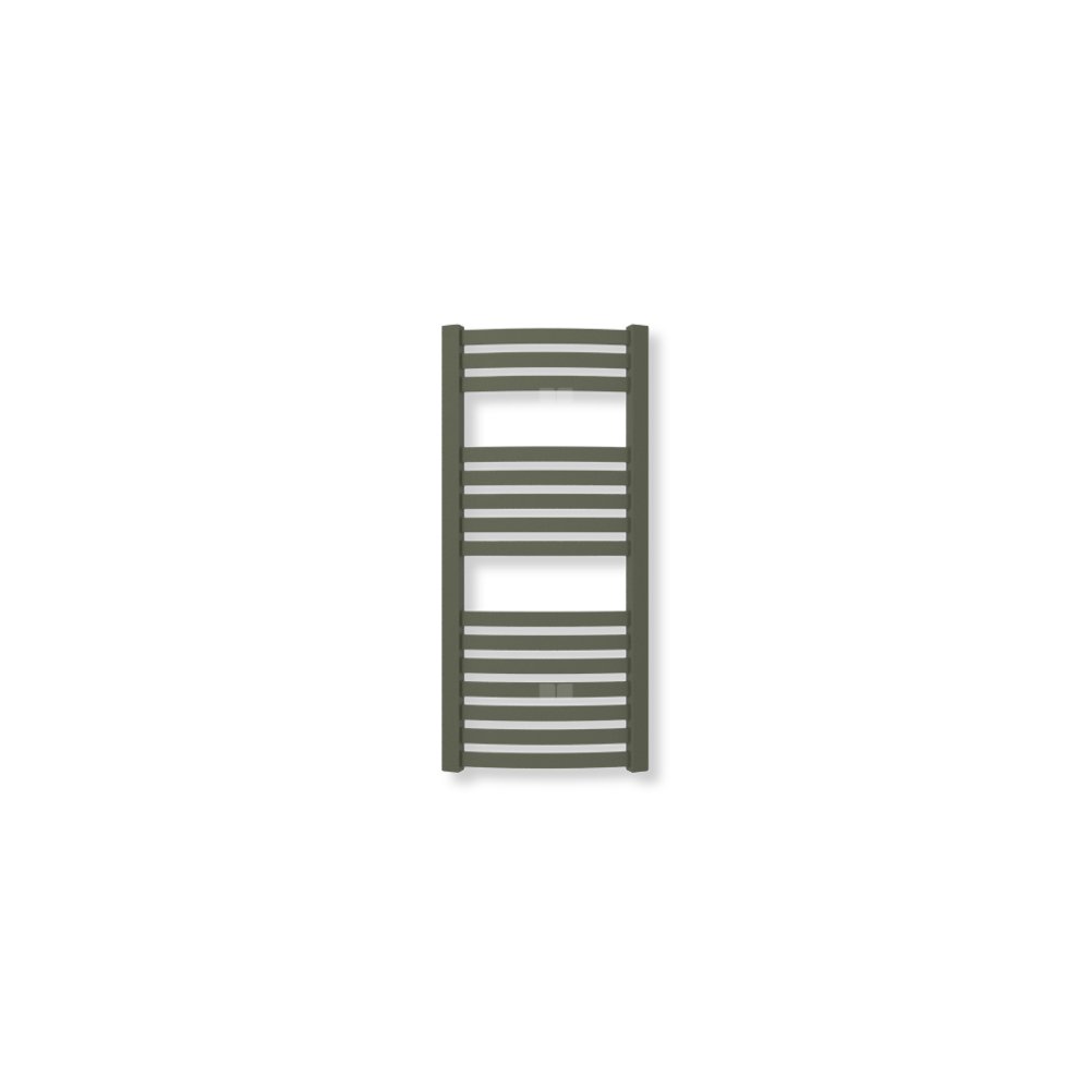 Grzejnik elektryczny TERMA DEXTER 860 x 400 mm, kolor zielony oliwkowy RAL6003, moc 400 W, podłączenie E1, kabel prosty z wtyczką szary