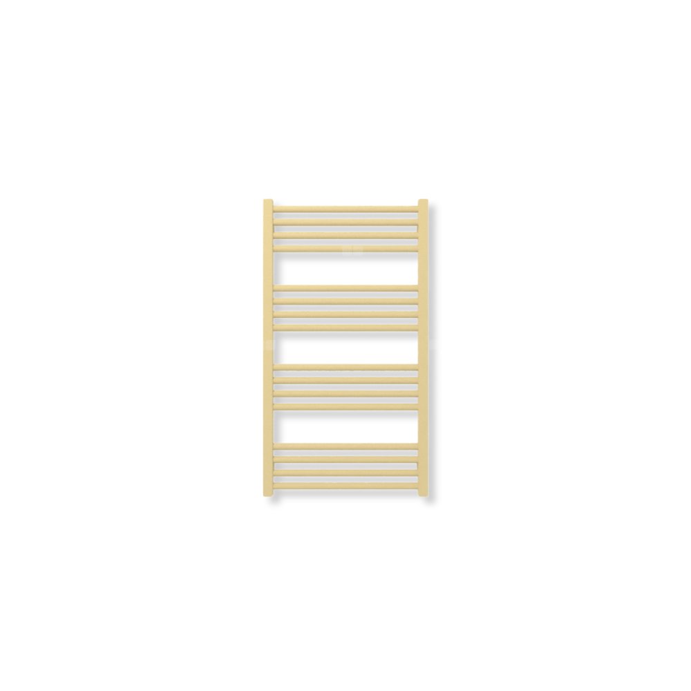Grzejnik elektryczny TERMA FIONA 900 x 500 mm, kolor mosiądz, moc 400 W, podłączenie E8, kabel spiralny z wtyczką czarny