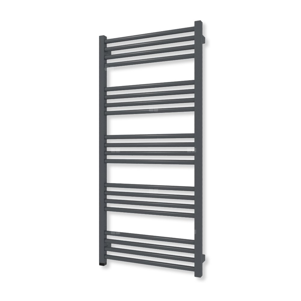 Grzejnik elektryczny TERMA FIONA ONE 1140 x 530 mm, kolor metaliczna czerń, moc 600 W, podłączenie E1, kabel prosty z wtyczką biały
