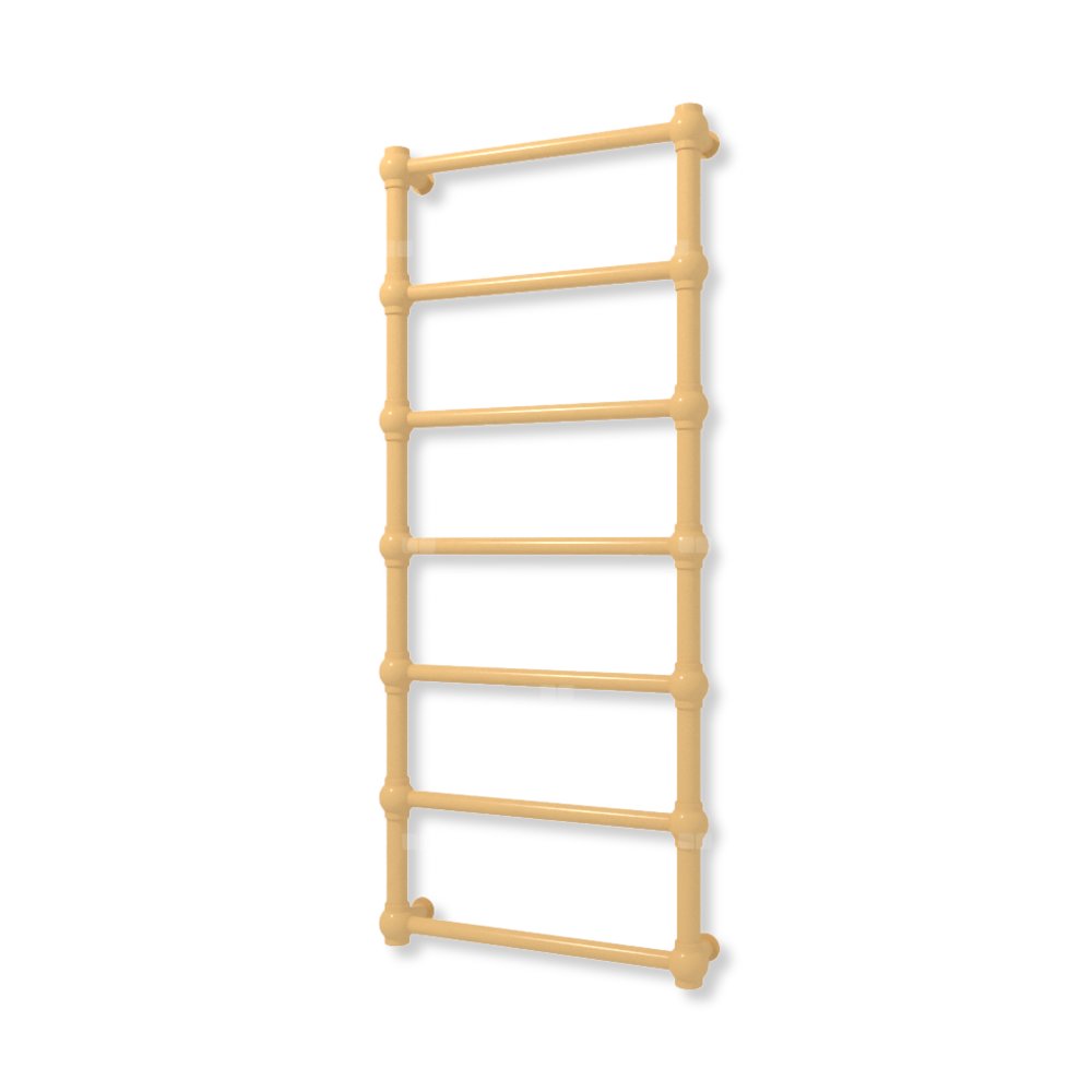 Bryła grzejnika została skonstuowana z rur o przekroju koła oraz stalowych kul. Całość tworzy formę charakterystyczną dla stylu retro.