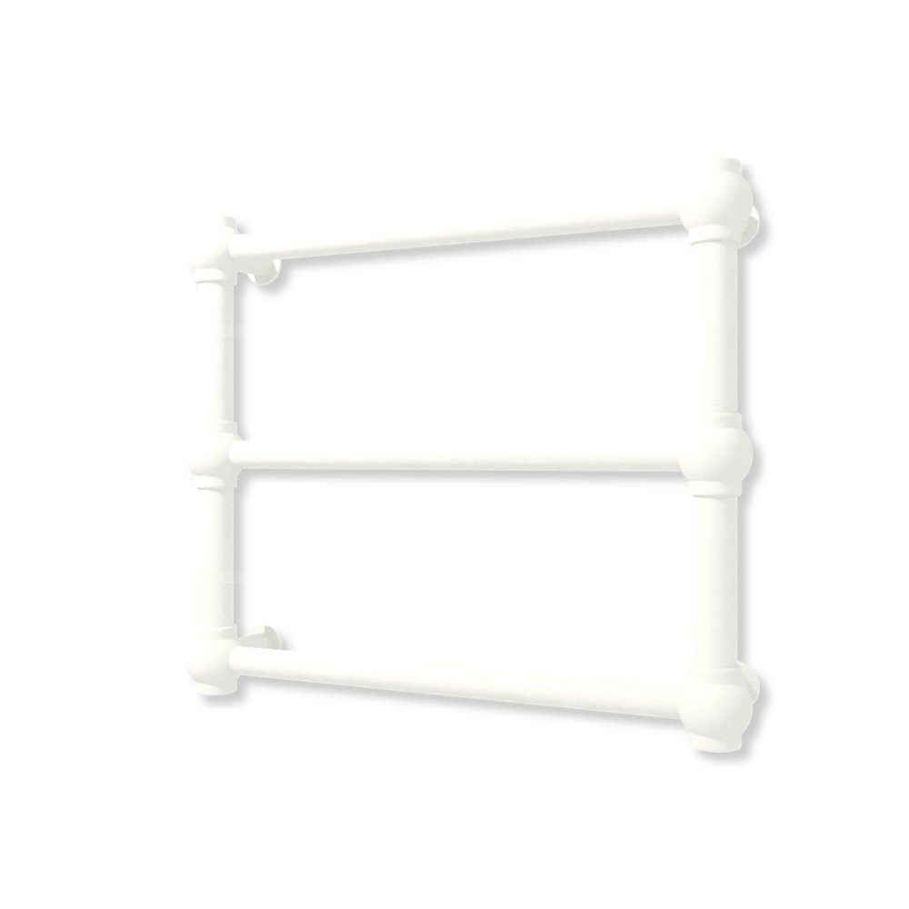 Bryła grzejnika została skonstuowana z rur o przekroju koła oraz stalowych kul. Całość tworzy formę charakterystyczną dla stylu retro.