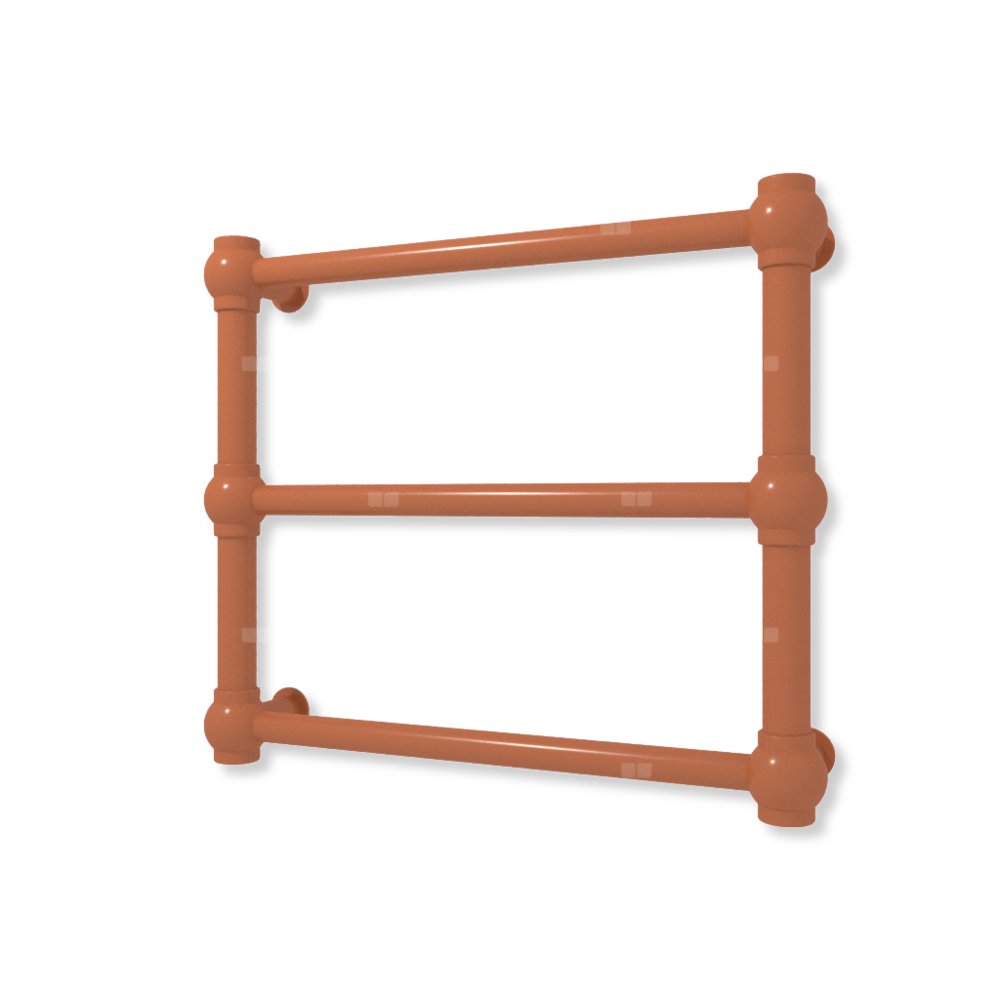 Bryła grzejnika została skonstuowana z rur o przekroju koła oraz stalowych kul. Całość tworzy formę charakterystyczną dla stylu retro.