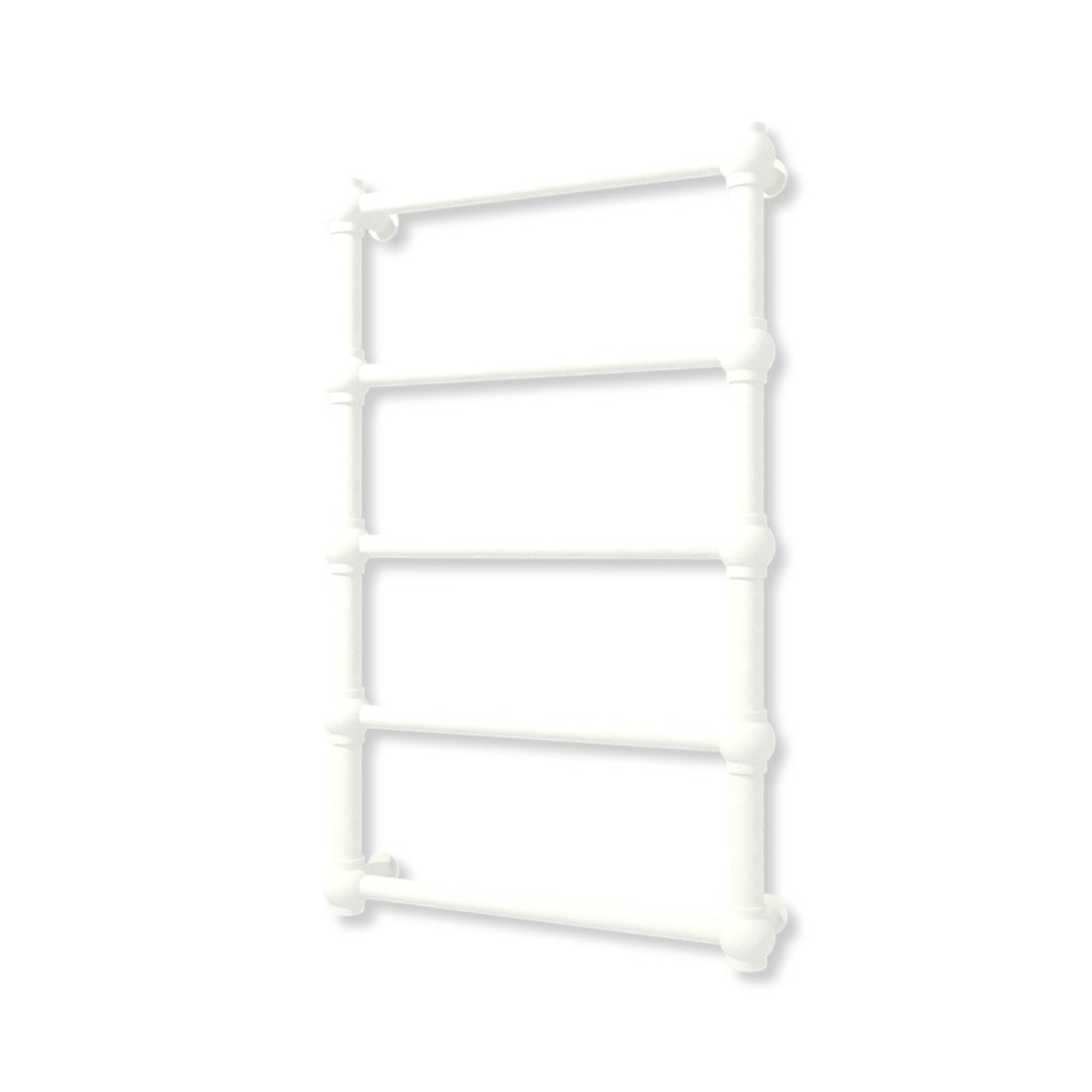 Bryła grzejnika została skonstuowana z rur o przekroju koła oraz stalowych kul. Całość tworzy formę charakterystyczną dla stylu retro.
