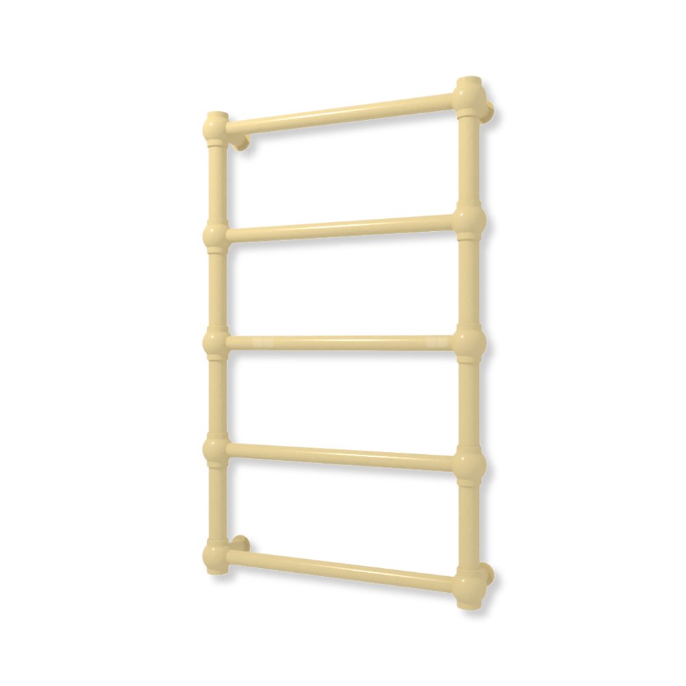 Bryła grzejnika została skonstuowana z rur o przekroju koła oraz stalowych kul. Całość tworzy formę charakterystyczną dla stylu retro.