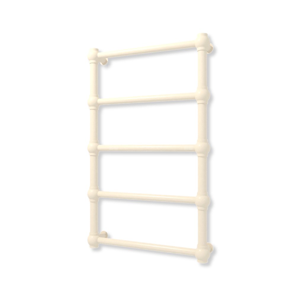 Bryła grzejnika została skonstuowana z rur o przekroju koła oraz stalowych kul. Całość tworzy formę charakterystyczną dla stylu retro.
