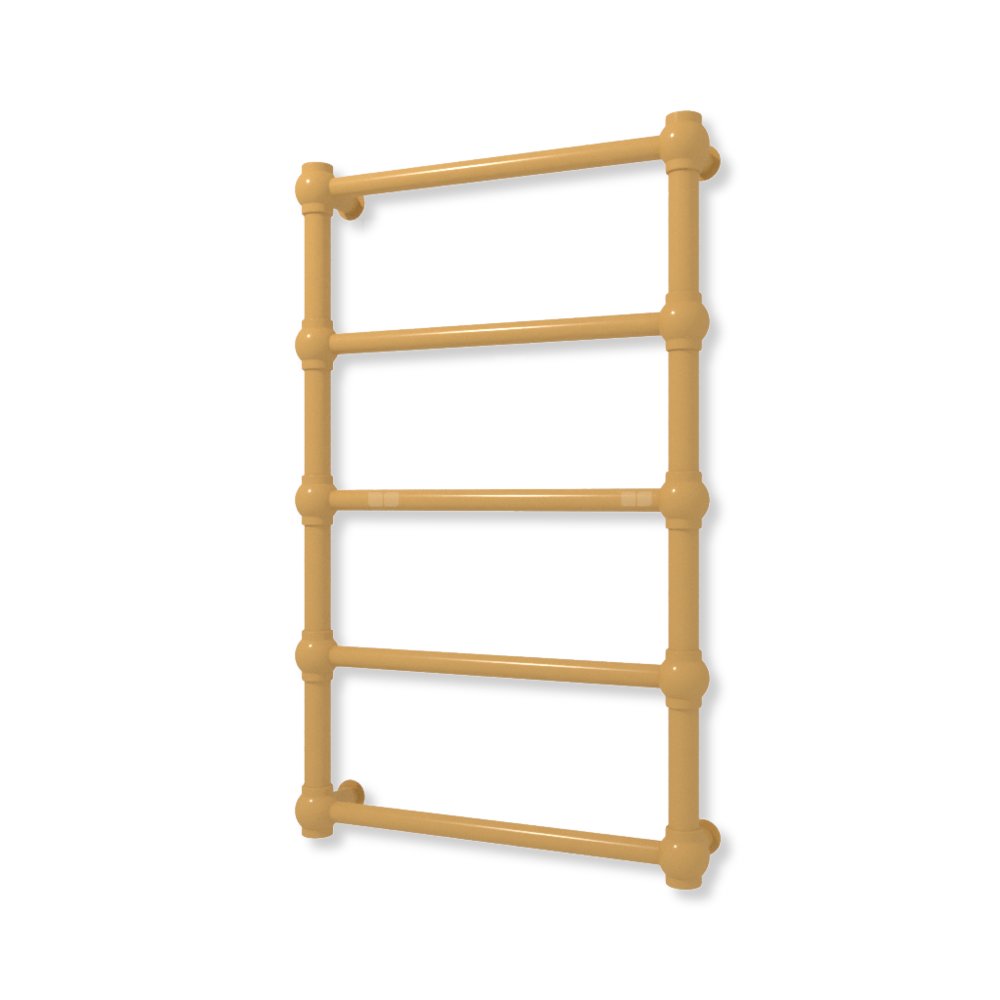 Bryła grzejnika została skonstuowana z rur o przekroju koła oraz stalowych kul. Całość tworzy formę charakterystyczną dla stylu retro.