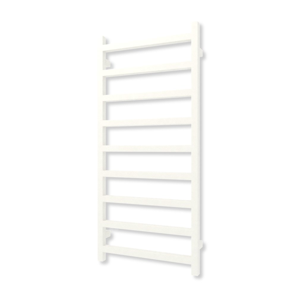 Tym co odróżnia grzejnik Simple od klasycznych łazienkowych drabinek, są bezszwowe łączenia oraz specjalnie zaprojektowane wieszaki, które pozwalają na zabawę formą i kolorystyką. W ofercie dostępne są także drewniane półki zwiększające funkcjonalność modelu.