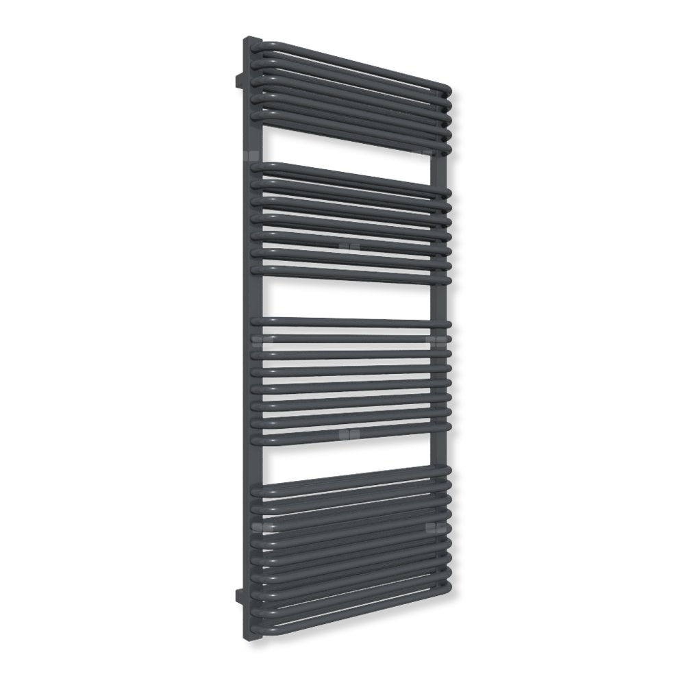 Grzejnik elektryczny TERMA TYTUS 1420 x 640 mm, kolor metaliczna czerń, moc 1200 W, podłączenie E1, kabel prosty z wtyczką biały