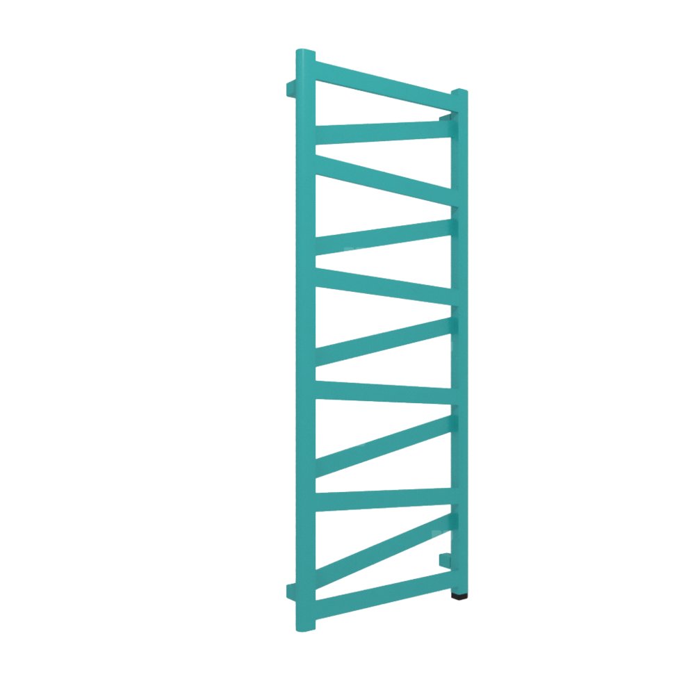 Grzejnik elektryczny TERMA VIPERA ONE 1230 x 500 mm, kolor niebieski turkusowy RAL5001, moc 400 W, podłączenie E8, kabel spiralny z wtyczką biały