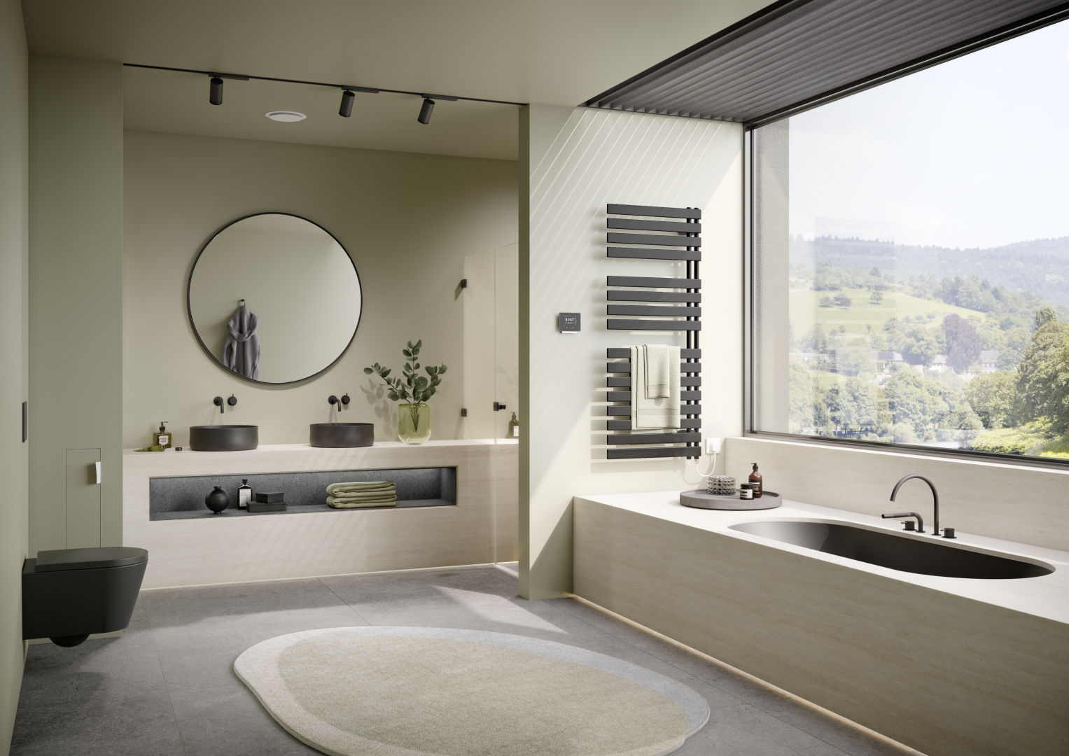 Asymetryczna forma i  rozmieszczenie płaskich prętów grzewczych w  blokach to cechy charakterystyczne Credo Half. Grzejnik jest z  jednej strony otwarty, co pozwala wygodnie zawieszać ręczniki. Grzejniki są dostępne w  wersjach prawej i  lewej. Opcjonalna półka z  drewna naturalnego stanowi elegancki, a  jednocześnie praktyczny akcent. Ciepła estetyka drewna w  ciekawy sposób kontrastuje ze stalowymi elementami grzejnika i  dodaje łazience przytulności.