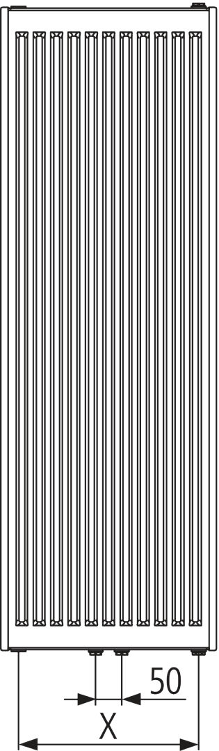 Smukły grzejnik płytowy pionowy profilowany Kermi Verteo Profil FSN, podłączenie dolne, środkowe lub po zewnętrznej, zasilanie z lewej strony, możliwość podłączenia grzejnika od góry, gwint wewn. 6 x 1/2”, obieg wody wymuszony, stalowy, produkowany wg normy PN EN 442, posiada znak CE, deklarację DWU. Wysoka moc grzewcza – odpowiednia do niskich temperatur zasilania, np. pompy ciepła. Dostarczany z: kompletem mocowań do ściany, odpowietrznikiem, kompletem osłon bocznych (górna na zamówienie) wykonanych z blachy ocynkowanej – łatwych do zdjęcia (w celu wyczyszczenia) bez ruszania zawiesi. Standardowo kolor biel Kermi zbliżony do RAL 9016. Za dopłatą możliwość zamówienia grzejnika w kolorze z palety Kermi lub RAL Classic i z dodatkową powłoką antykorozyjną. Lakierowanie dwuwarstwowe. Grzejnik odtłuszczony, fosforanowany, zagruntowany zanurzeniowo ETL i lakierowany proszkowo EPS. Ciśnienie robocze 10 bar, temp. max. 110oC Grzejnik standardowo wyposażony w opatentowany system Therm-x2: szeregowe połączenie płyt grzejnika (najpierw zasilana jest płyta przednia, a następnie tylne płyty), co pozwala skrócić o 25 % czas rozgrzewania pomieszczenia oraz zwiększyć do 100% emisję energii przez promieniowanie. Wszystkie te funkcje, w połączeniu z zaworem ustawionym na odpowiednią wartość kV,, przyczyniają się do zmniejszenia kosztów energii aż do 11%. Często wydajność przedniej płyty jest wystarczająca a kolejna płyta uzyskuje funkcję ekranu przeciw wypromieniowaniu ciepła. Kolejne płyty grzeją dopiero przy zwiększonym zapotrzebowaniu na ciepło.