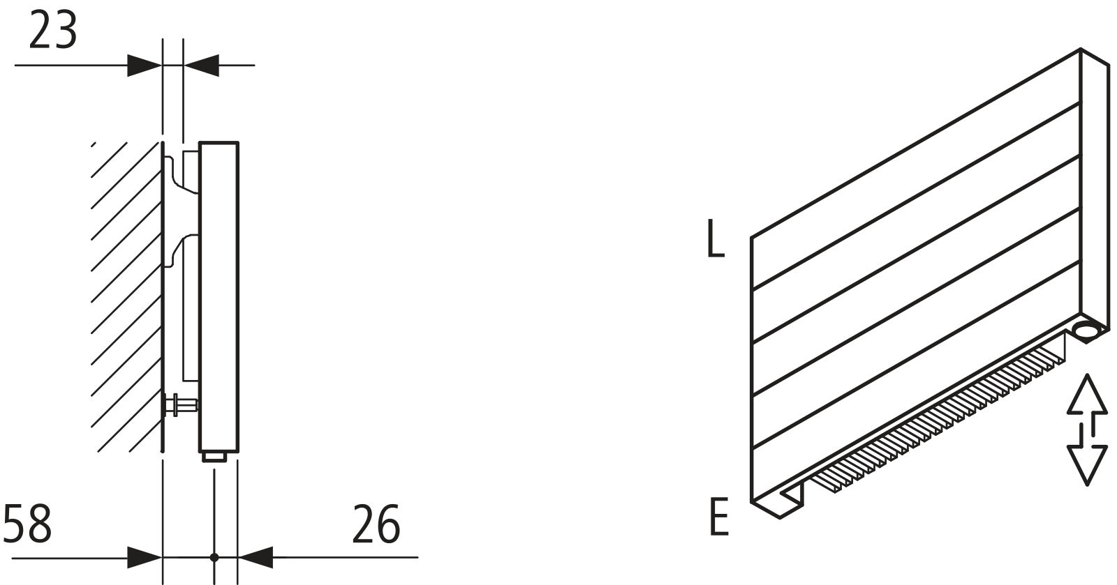 Pionowe, smukłe wykonanie – estetycznie wykończone za pomocą standardowo montowanej bocznej osłony lub idealne dostosowanie w wersji poziomej – z elegancką osłoną lub bez.