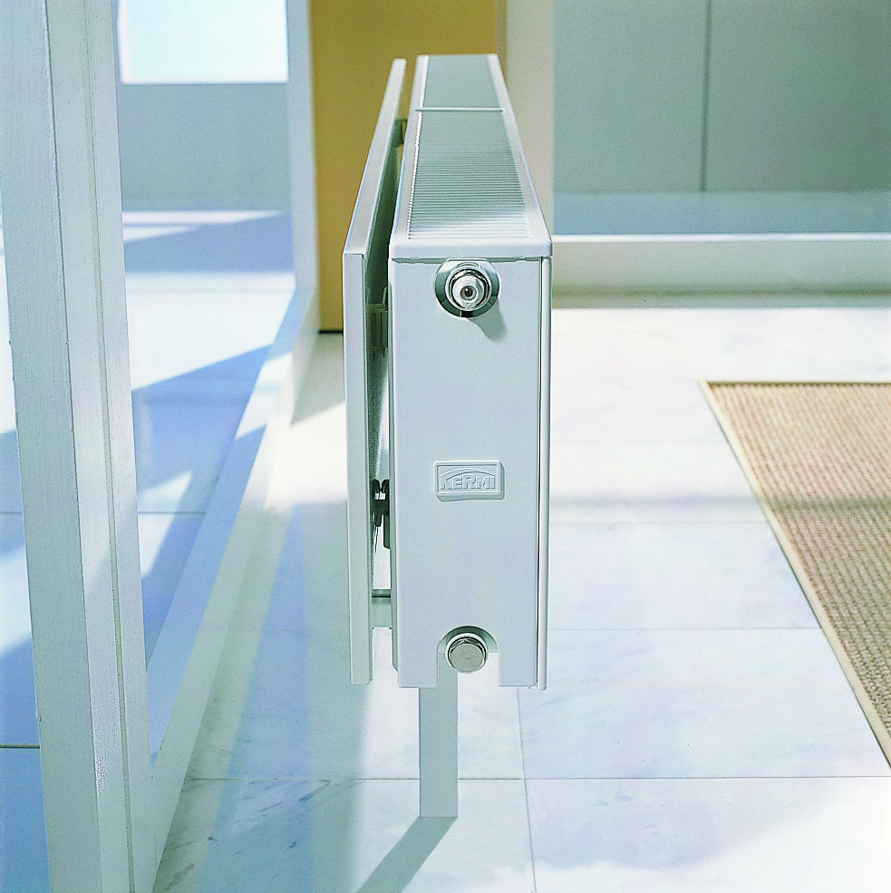 Grzejnik zaworowy Kermi jest podłączany od dołu z boku. Wkładka zaworowa ze wstępnie nastawionymi wartościami kv w grzejnikach zaworowych jest montowana fabrycznie.