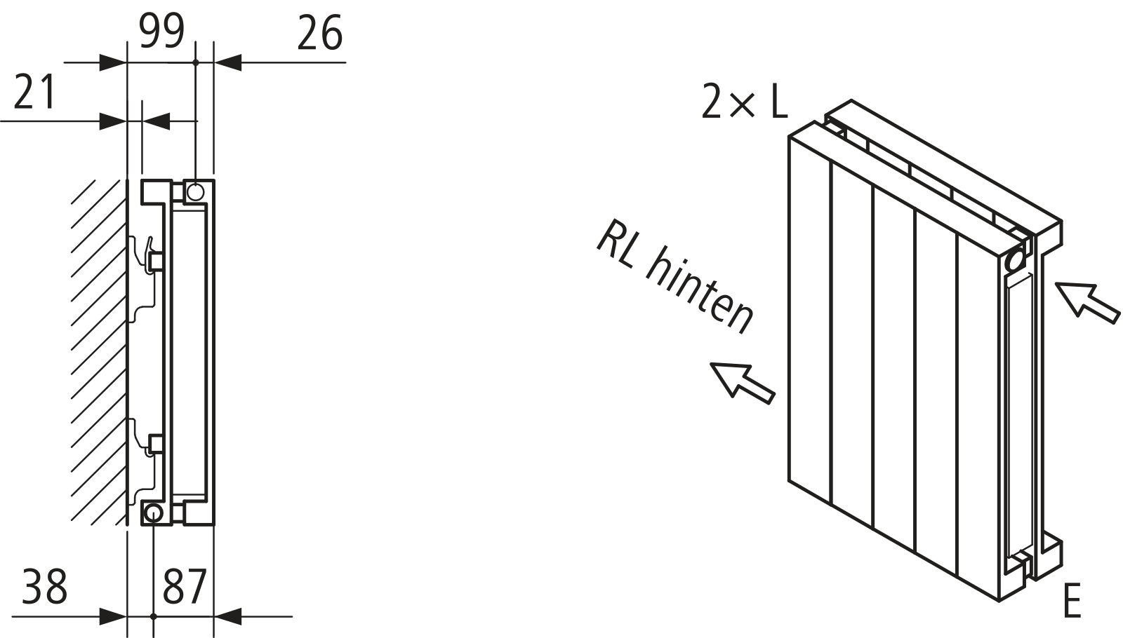 Pionowe, smukłe wykonanie – estetycznie wykończone za pomocą standardowo montowanej bocznej osłony lub idealne dostosowanie w wersji poziomej – z elegancką osłoną lub bez.