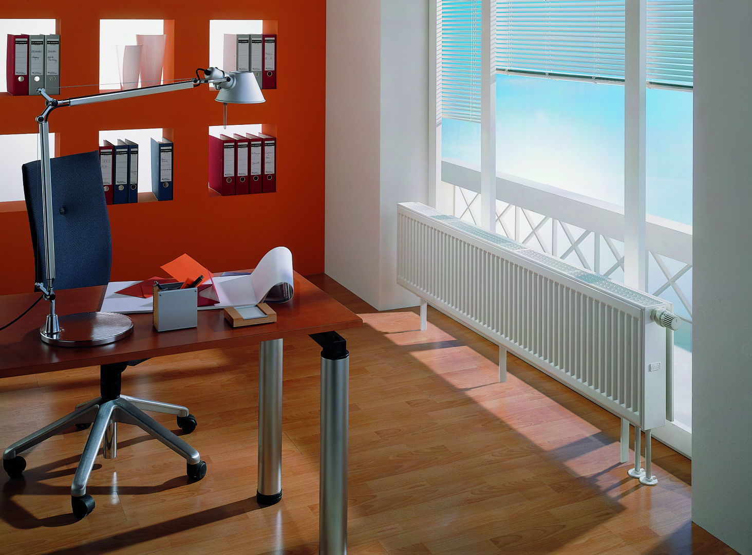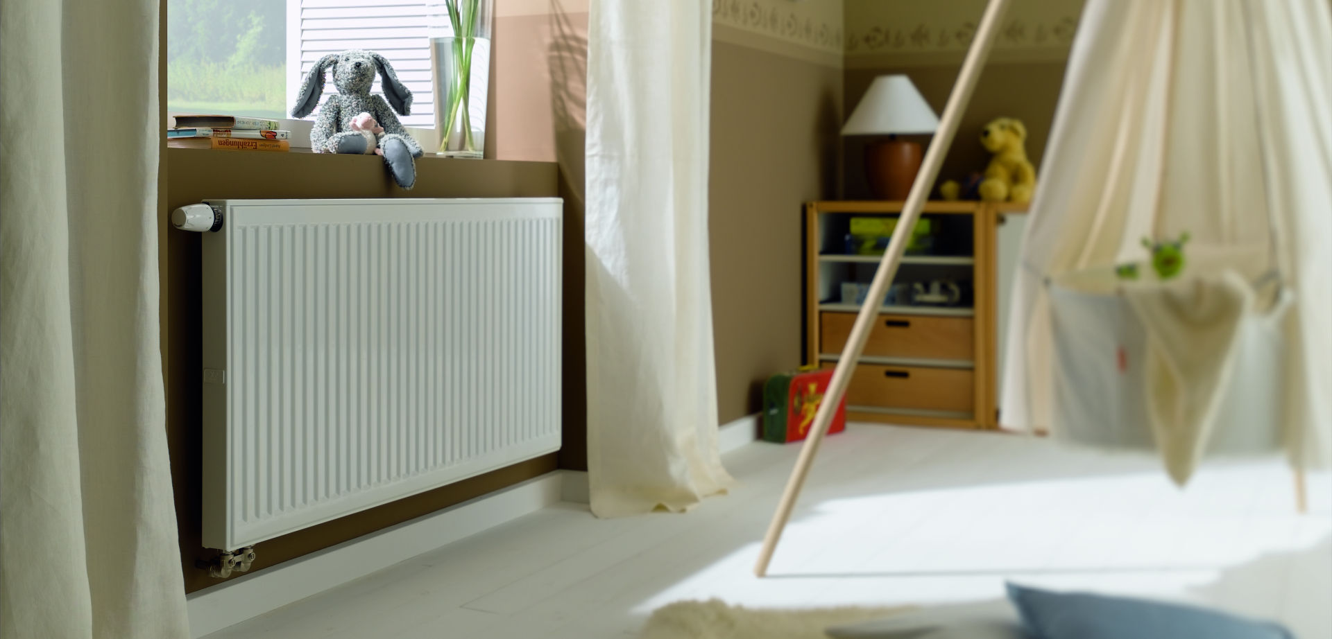 Grzejnik zaworowy Kermi jest podłączany od dołu z boku. Wkładka zaworowa ze wstępnie nastawionymi wartościami kv w grzejnikach zaworowych jest montowana fabrycznie.