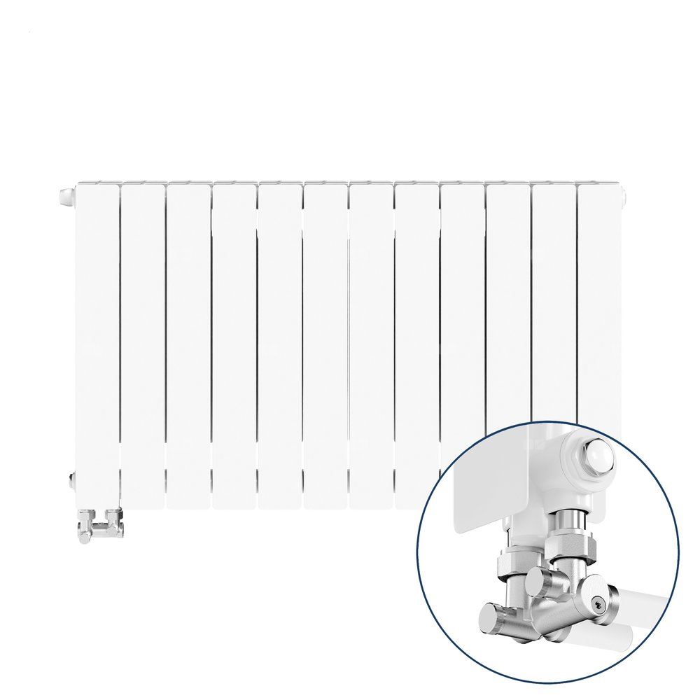 Grzejnik żeberkowy KFA Armatura ADR500/D/12 aluminium, podłączenie dolne, lewe, kątowe 570 x 966 mm, kolor biały