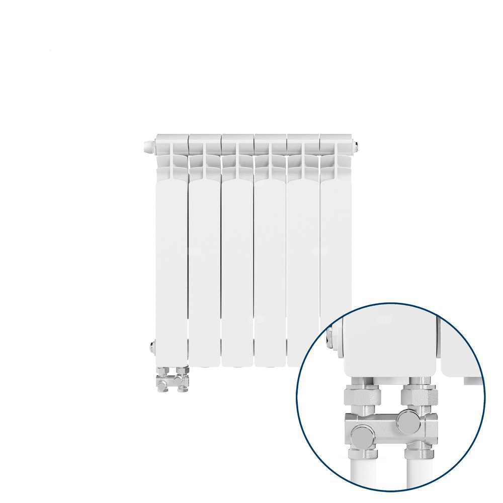 Grzejnik żeberkowy KFA Armatura G500F/D/6 aluminium, podłączenie dolne, lewe, proste 572 x 483 mm, kolor biały