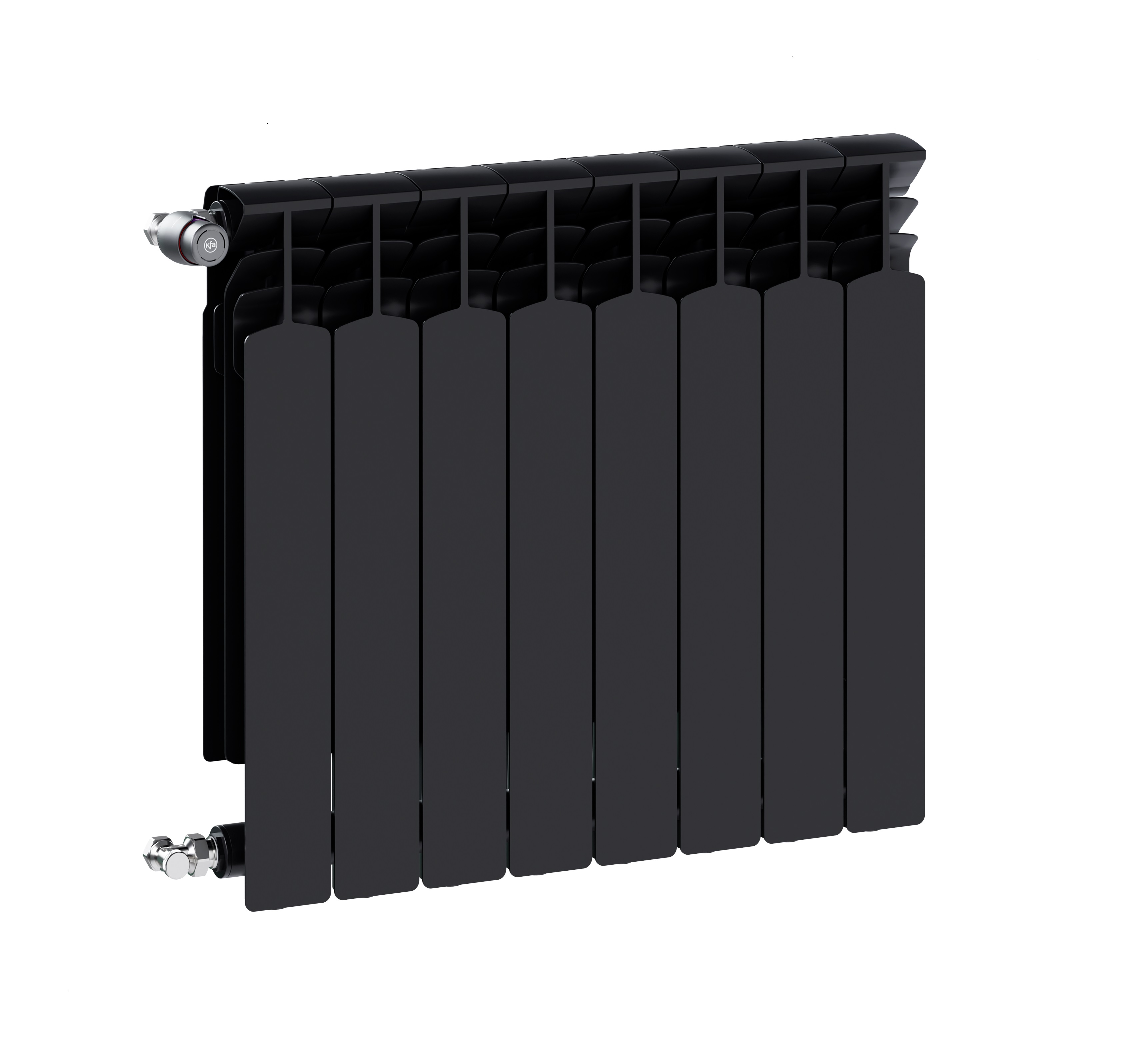 Grzejnik żeberkowy KFA Armatura G600F/8 aluminium, podłączenie boczne 672 x 644 mm, kolor czarny