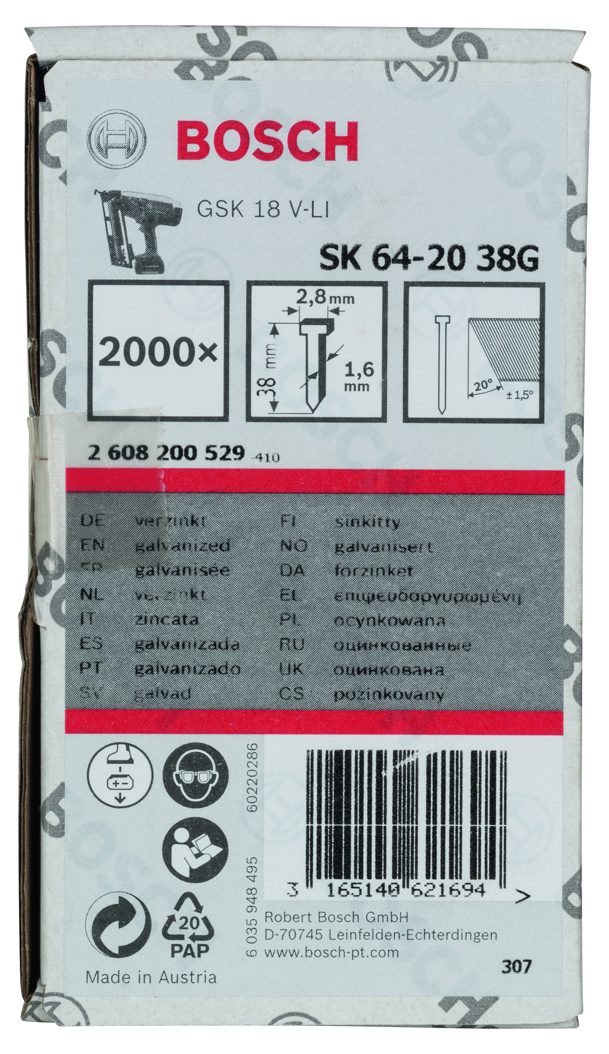 GWÓŹDŹ SK64-20 38G 1.6MM 2'000 PC