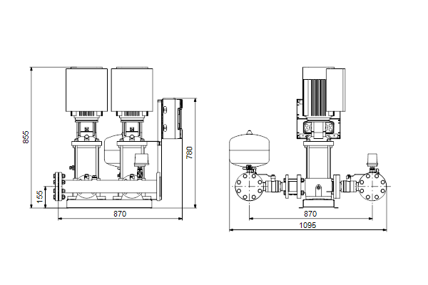 Po stronie ssawnej pomp znajduje się kolektor ssawny ze stali nierdzewnej (