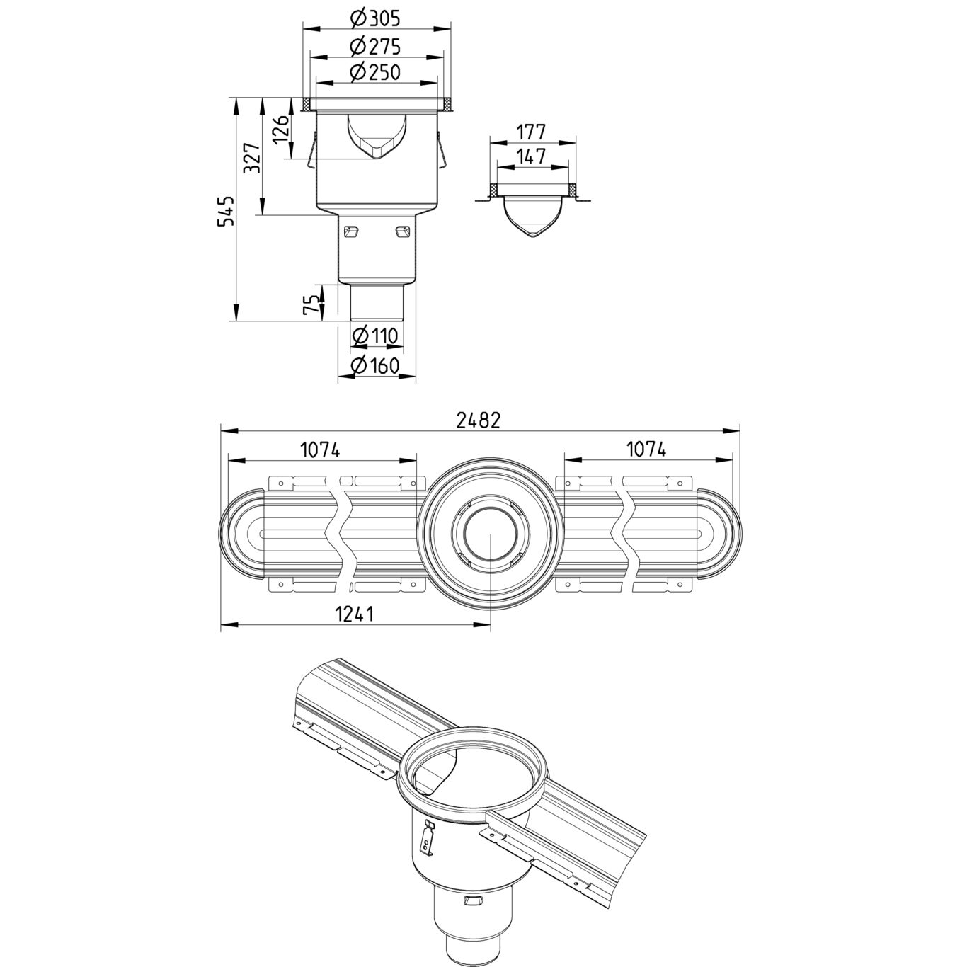 HYGIENICPRO Korpus kanału (do dokupienia syfon typ 562, kosz osadczy typ 780 oraz ruszt typ 697.250.150.50 ) wymiar 150x2000 C OUTLET odpływ na środku, wysoki model kosz osadczy 780.004.030.05