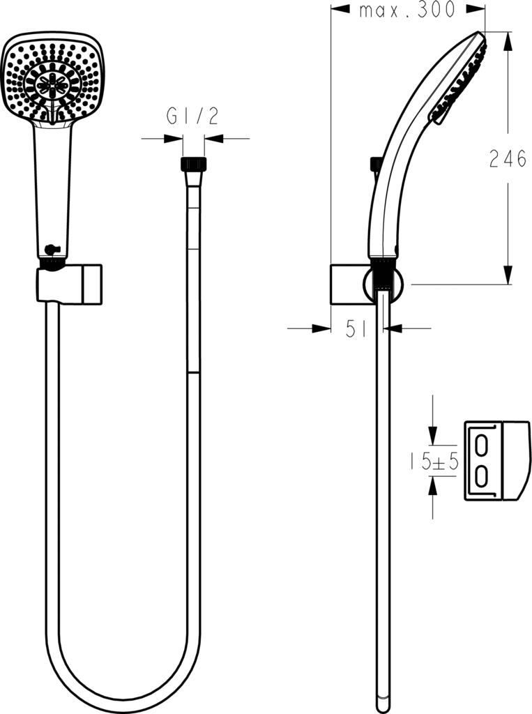 Zestaw natryskowy M3, trzyfunkcyjny, 100 mm. Słuchawka prysznicowa średnicy 100 mm. Gumowe końcówki dysz zapobiegające osadzaniu się kamienia. Ogranicznik przepływu wody do 8 l/min. Wąż natryskowy Idealflex, 1750 mm. Ruchomy uchwyt ścienny z tworzywa. Logo Ideal Standard.