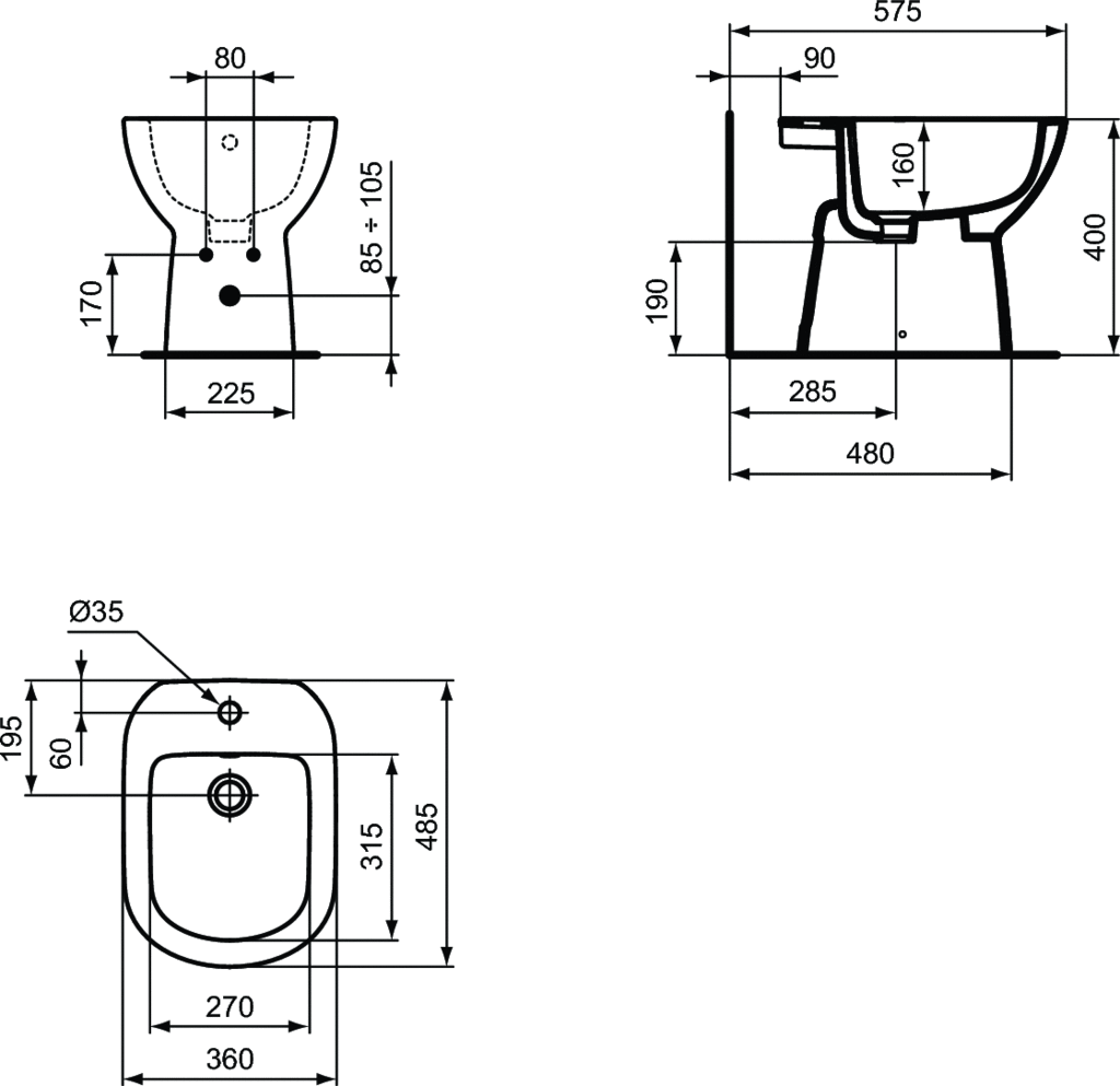 Bidet Ideal Standard i.life A stojący z 1 otworem na baterię. Zestaw montażowy TT0257919 w komplecie.