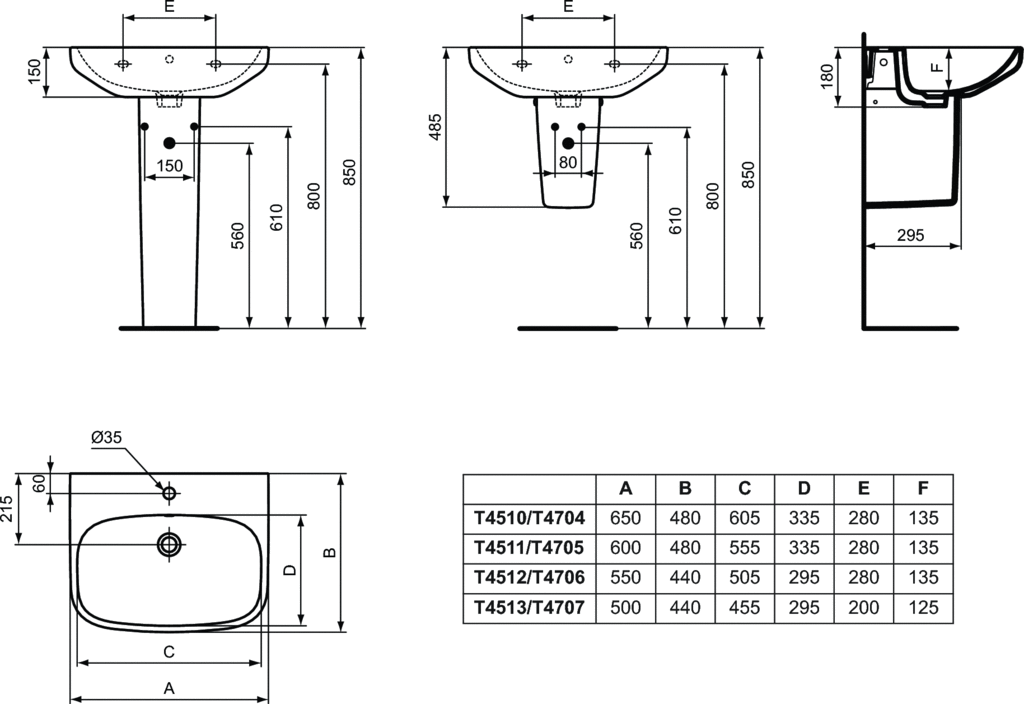 Półpostument Ideal Standard i.life A do montażu z umywalkami 50/55/60/65 cm. Zestaw montażowy 50/55/60/65 cm w komplecie.