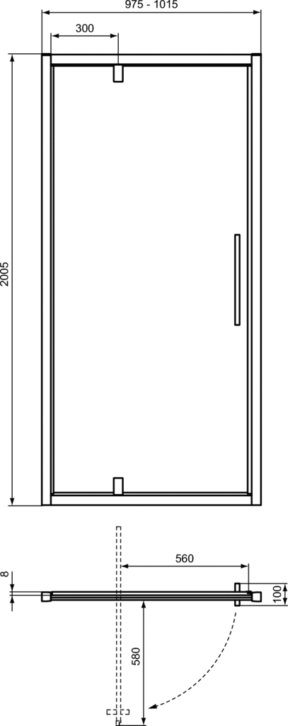 Drzwi uchylne Ideal Standard i.life otwierane na zewnątrz. Wykonane z bezpiecznego transparentnego szkła 8 mm z powłoką Ideal Clean zabezpieczającą przed osadzaniem się kamienia. Profile aluminiowe o grubości 1,2 mm. Rozciągliwość 20 mm na profil. Przeznaczony do montażu we wnęce (ściana do ściany) lub w narożniku (z panelem bocznym typu L). Do montażu z brodzikami Ideal Standard w odpowiednich wymiarach lub bezpośrednio na płytkach. Wszystkie produkty z linii są odwracalne. Więcej informacji oraz rekomendowanych rozwiązań znajduje się w katalogu lub cenniku.