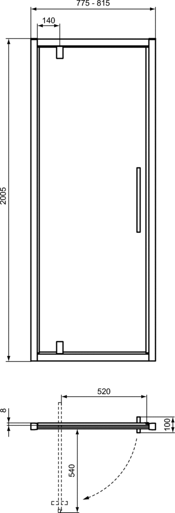 Drzwi uchylne Ideal Standard i.life otwierane na zewnątrz. Wykonane z bezpiecznego transparentnego szkła 8 mm z powłoką Ideal Clean zabezpieczającą przed osadzaniem się kamienia. Profile aluminiowe o grubości 1,2 mm. Rozciągliwość 20 mm na profil. Przeznaczony do montażu we wnęce (ściana do ściany) lub w narożniku (z panelem bocznym typu L). Do montażu z brodzikami Ideal Standard w odpowiednich wymiarach lub bezpośrednio na płytkach. Wszystkie produkty z linii są odwracalne. Więcej informacji oraz rekomendowanych rozwiązań znajduje się w katalogu lub cenniku.