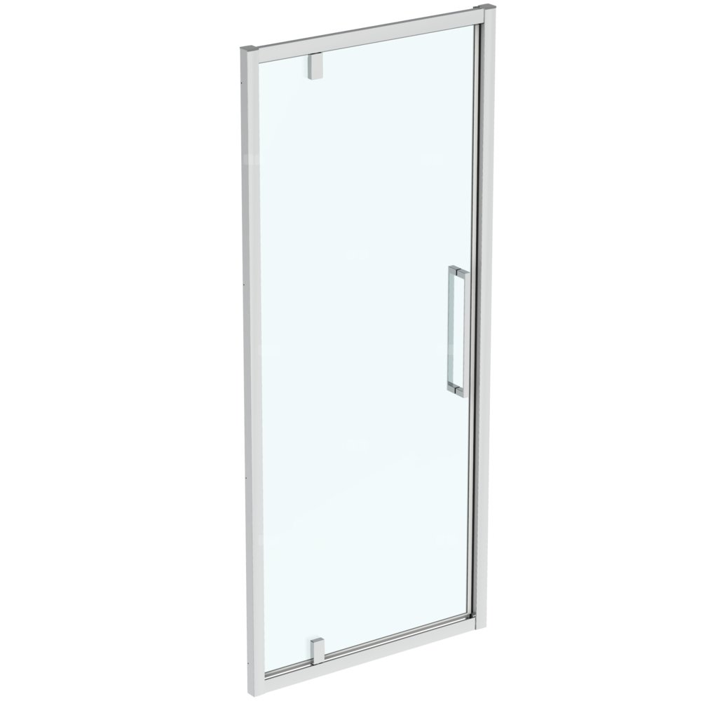 Drzwi uchylne Ideal Standard i.life otwierane na zewnątrz. Wykonane z bezpiecznego transparentnego szkła 8 mm z powłoką Ideal Clean zabezpieczającą przed osadzaniem się kamienia. Profile aluminiowe o grubości 1,2 mm. Rozciągliwość 20 mm na profil. Przeznaczony do montażu we wnęce (ściana do ściany) lub w narożniku (z panelem bocznym typu L). Do montażu z brodzikami Ideal Standard w odpowiednich wymiarach lub bezpośrednio na płytkach. Wszystkie produkty z linii są odwracalne. Więcej informacji oraz rekomendowanych rozwiązań znajduje się w katalogu lub cenniku.