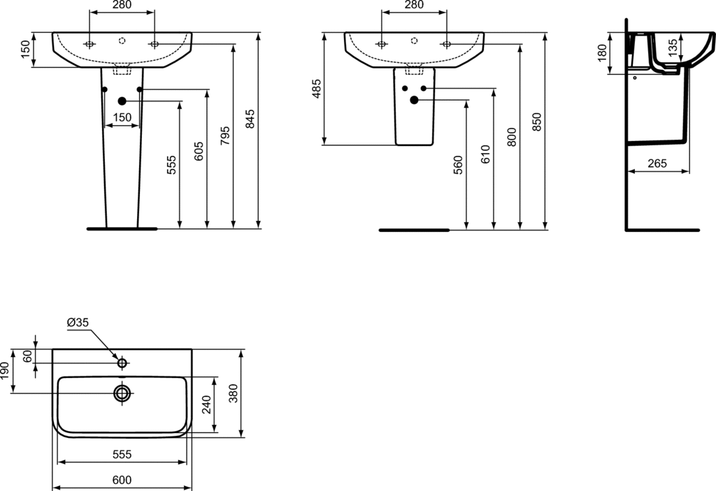 Półpostument do montażu z umywalkami 50/55/60 cm. Zestaw montażowy TV63667 w komplecie (mocowanie bez wiertła).