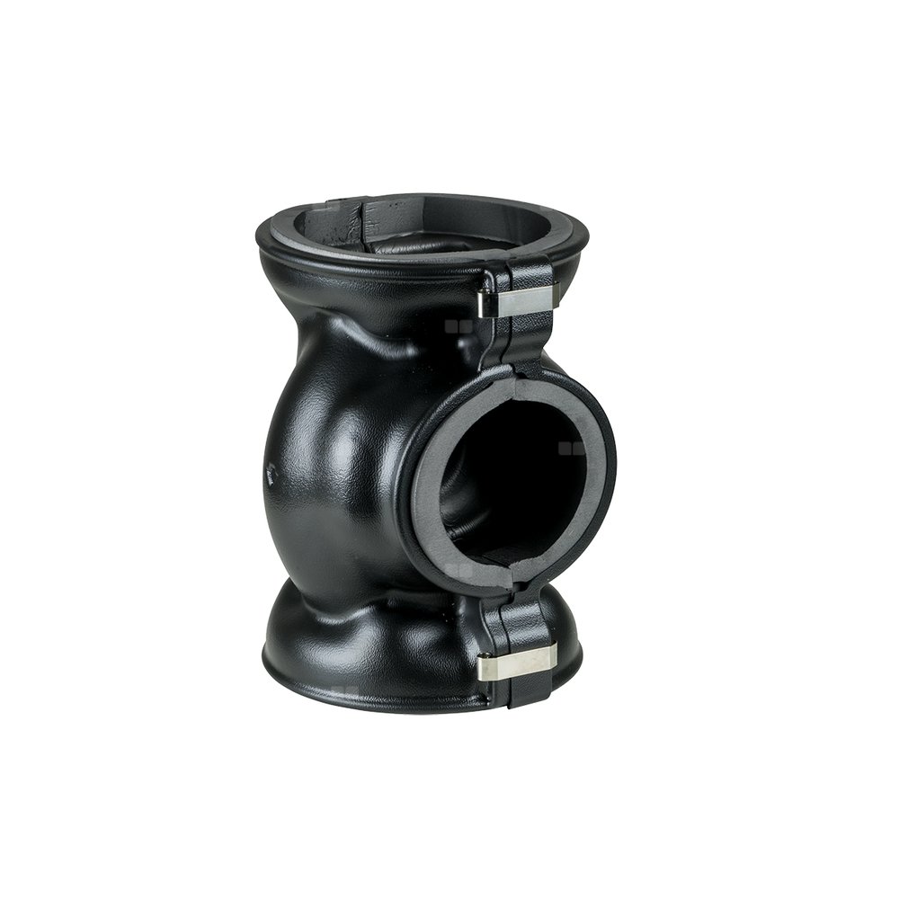 Zestaw akcesoriów składa się z dwóch korpusów poliuretanowych (PUR) oraz metalowych zacisków zapewniających szczelny montaż.