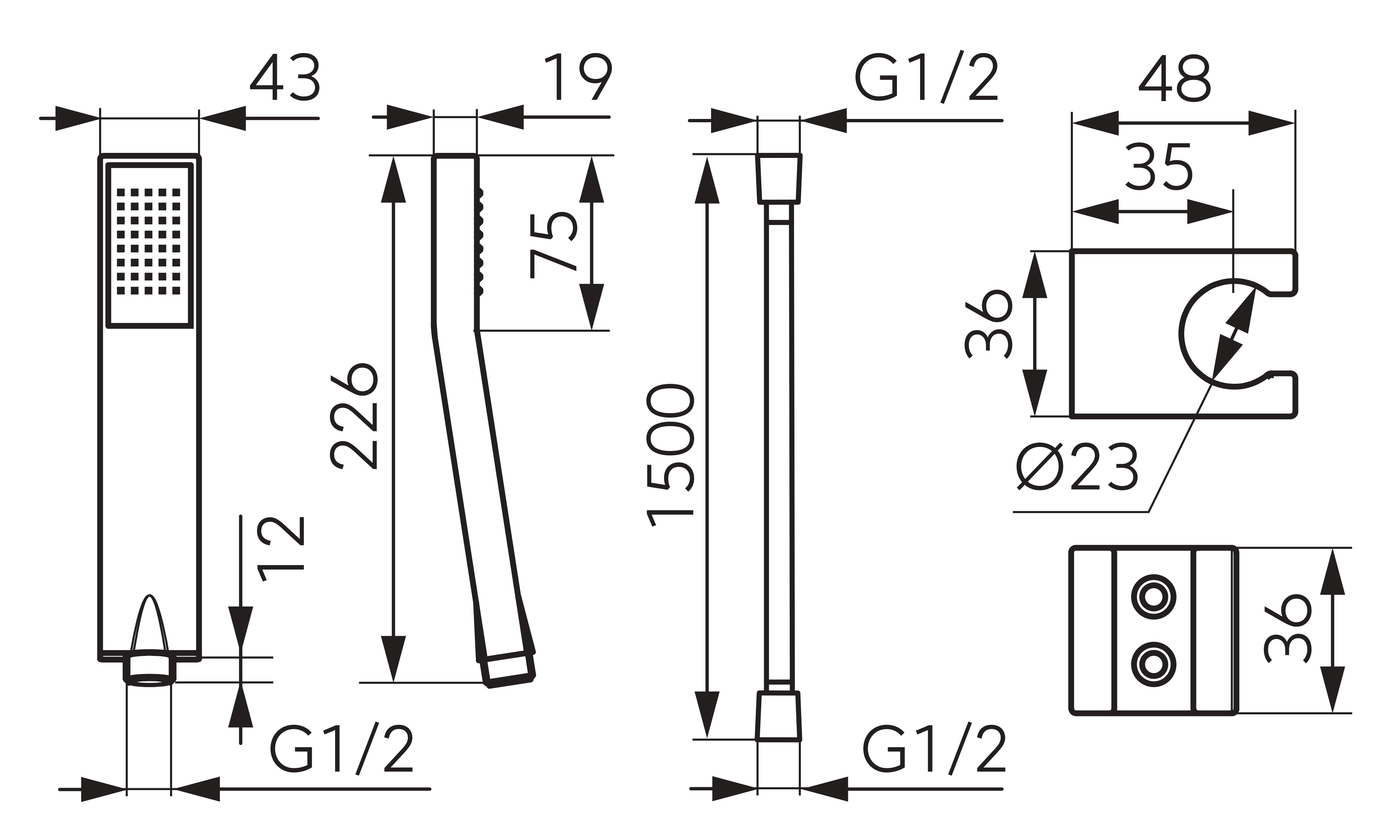 • Długość rączki natryskowej: 226 mm