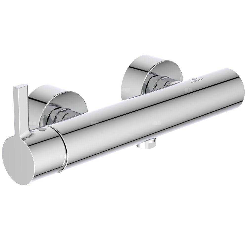 Głowica ceramiczna 38 mm z ogranicznikiem temperatury wody. Logo Ideal Standard umieszczone na korpusie baterii. Metalowy uchwyt bez oznaczenia wody ciepłej i zimnej. Zawór zwrotny. Osłonięte i wyciszone przyłącza ścienne.