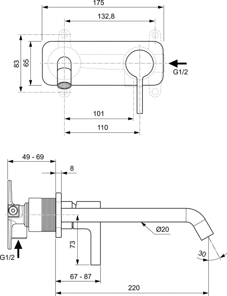 Zestaw montażowy podtynkowej baterii umywalkowej. Głowica ceramiczna 28 mm z ogranicznikiem temperatury wody. Bez funkcji Click. Wylewka rurowa o długości 225 mm. Zaokrąglona, prostokątna, metalowa rozeta z logo Ideal Standard. Metalowy uchwyt z logo Ideal Standard bez oznaczeń. Aerator typu Caché M16,5x1 z ogranicznikiem przepływu wody do 5 l/min. Do skompletowania z elementem montażowym A1313NU.