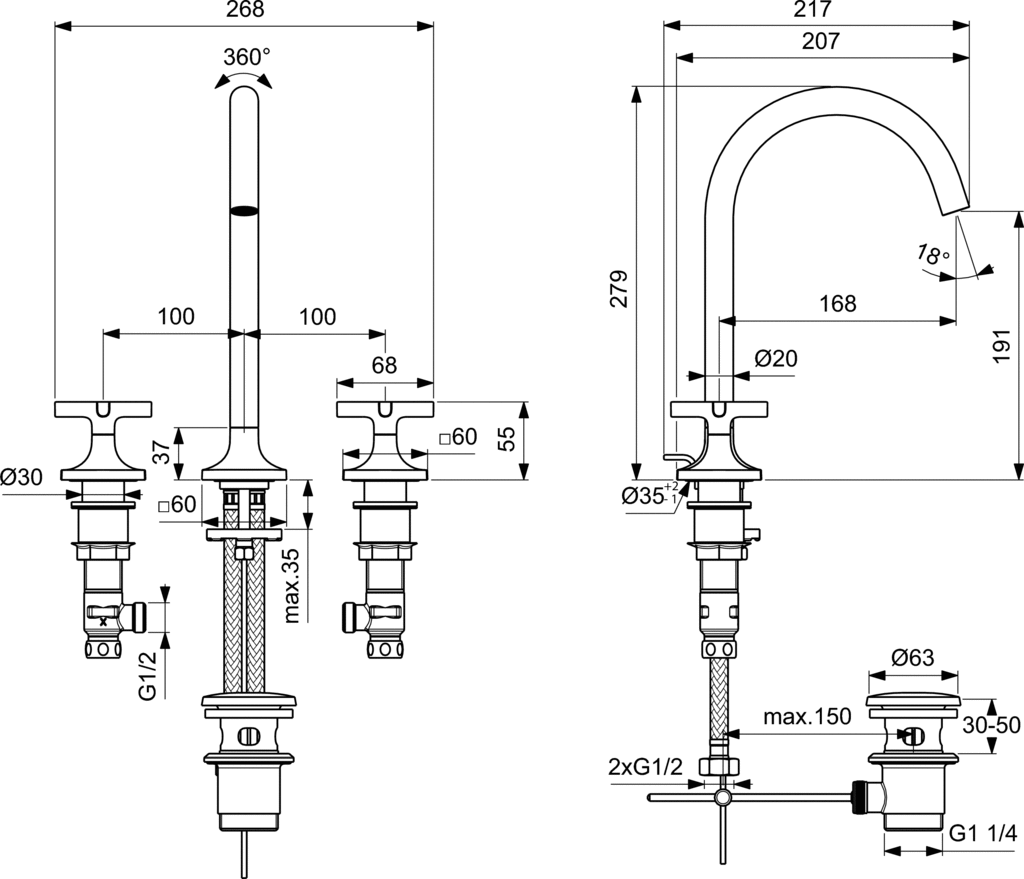 - Min. głębokość: 217 mm