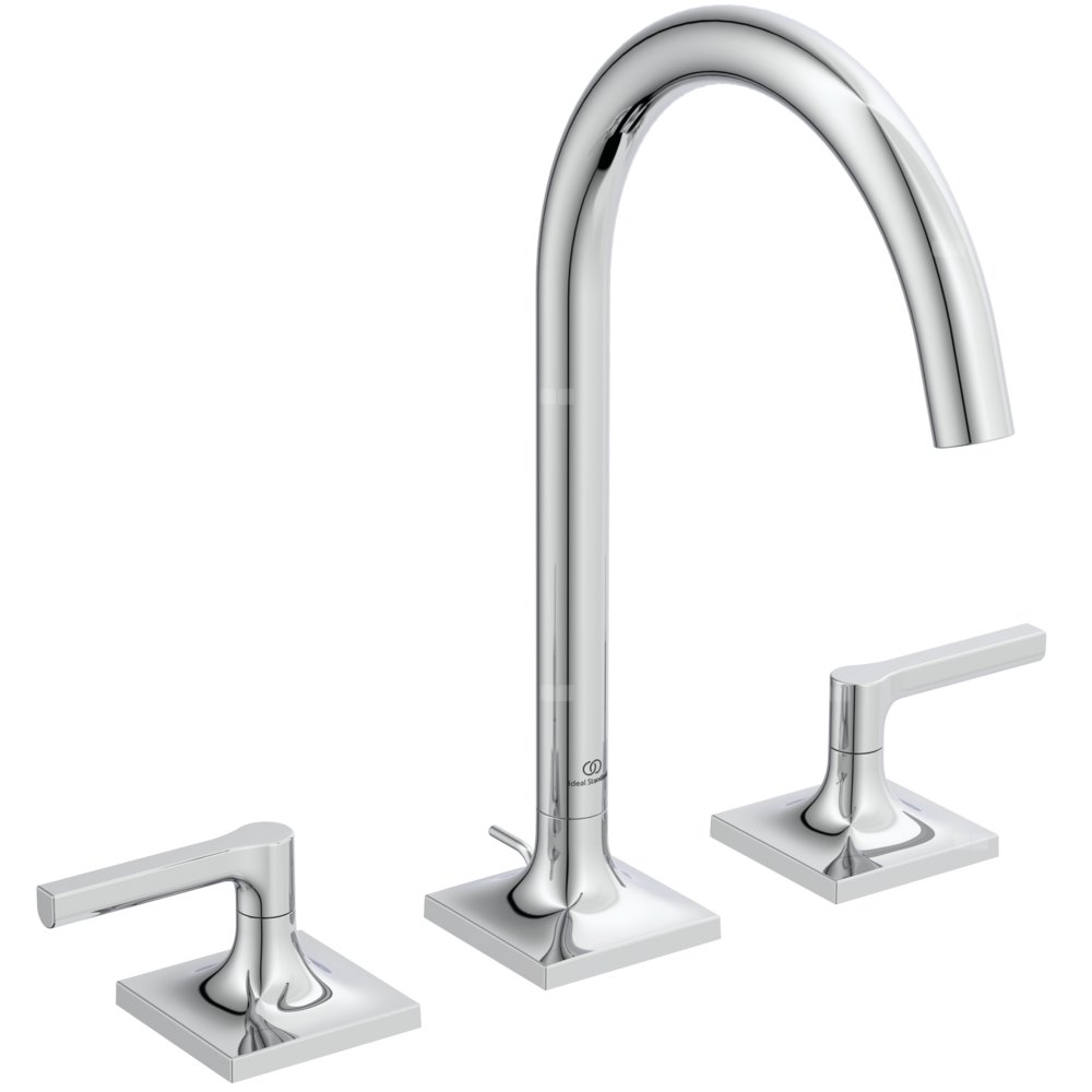 Bateria umywalkowa 3-otworowa, metalowy korek automatyczny.