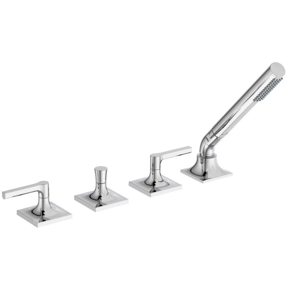 Bateria natryskowo-wannowa 4-otworowa, uchwyty dźwigniowe.