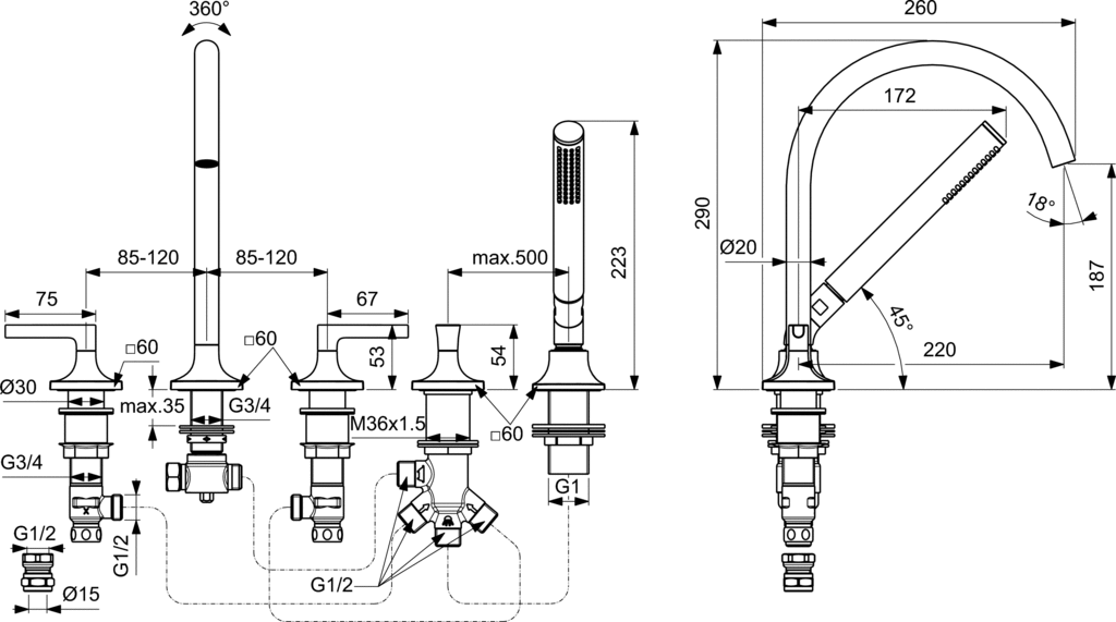 - Min. głębokość: 260 mm