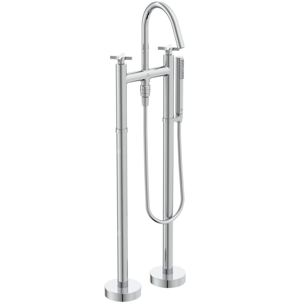 Bateria natryskowo-wannowa wolnostojąca, uchwyty krzyżowe.