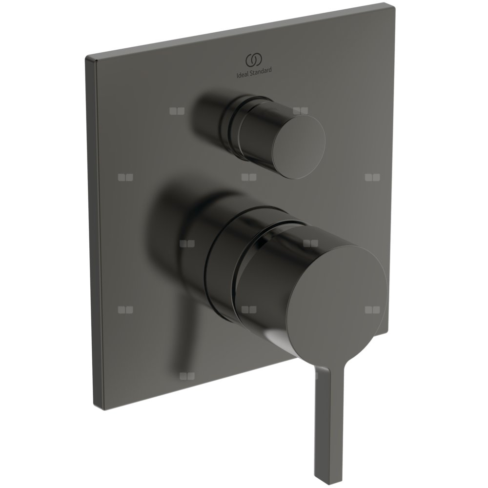 Zestaw montażowy podtynkowej baterii wannowo-natryskowej Joy Neo (widoczna część). Głowica ceramiczna IS 47mm z ogranicznikiem temperatury. Smukła, kwadratowa, metalowa rozeta z logo Ideal Standard. Metalowy uchwyt bez oznaczeń. Automatyczny przełącznik. Do skompletowania z zestawem EASY-BOX A1000NU (część wewnętrzna).